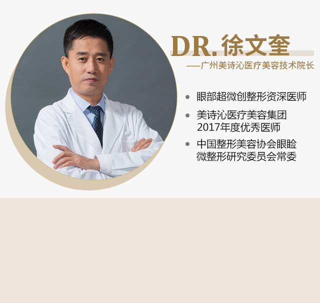 徐文奎主任,专注眼部整形近20年,熟练掌握各类眼部整形技术,尤其擅长不开刀去眼袋。经过大量临床实践将